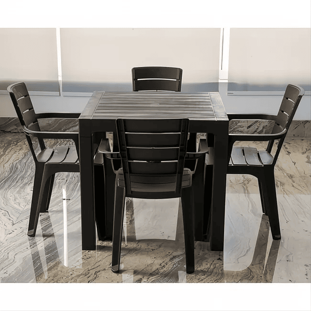 Combo Roble Cuadrado Reyplast (Mesa Roble 80 X 80 + 4 Sillas Roble C/ Brazos) Descubre la Combinación Perfecta de Roble Cuadrado en Productos Rey Perú